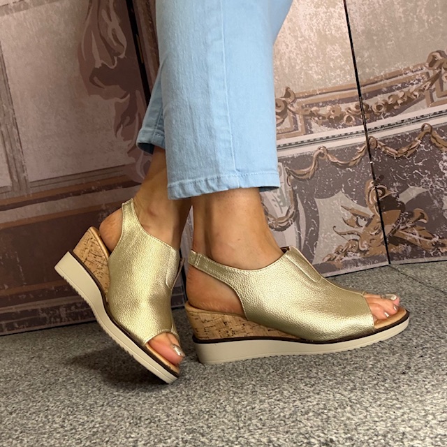 Zanni & Co “Mirfa” Gold Wedge Slingback Sandal