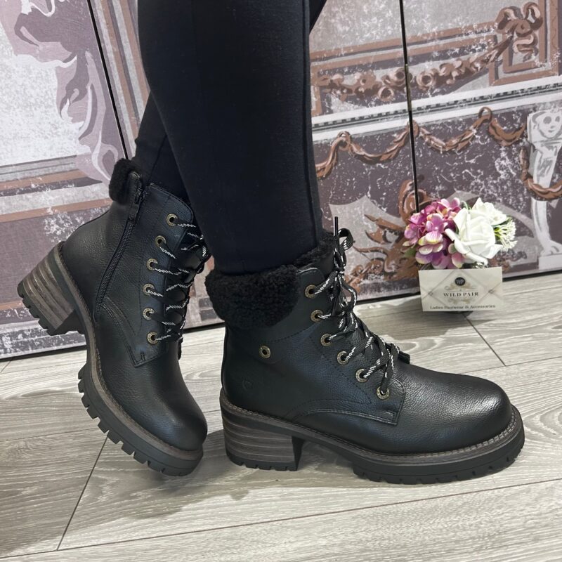 Heavenly Feet “Electra” Black Lace Up Block Heel Boot