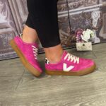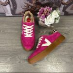 Hot pink, suede finish.