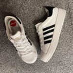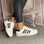 “80’s Vibes” White Crinkle Leatherette Finish With Black Stripe & Heel Detail.
