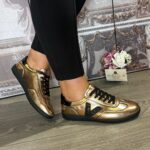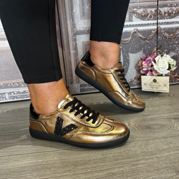 Smooth metallic gold slimline trainer,