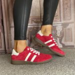 Siren Red Suede Finish with White Stripe Detail & Heel Cap.