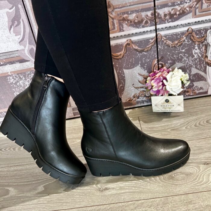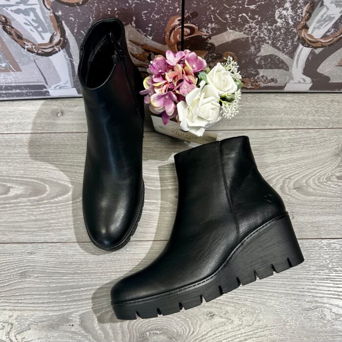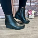 Heavenly Feet “Fiorella” Black Wedge Ankle Boot