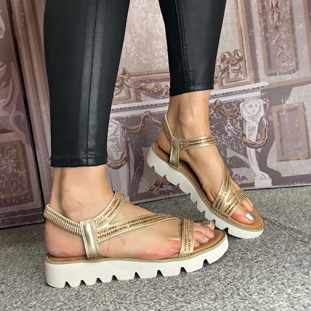 Perfect for every day, evening and holiday wear, our fabulous Vegan friendly sandal style Fresco brings a little glitz and glamour to every outfit! Faux diamante trimmed upper straps and a fixed, elasticated stretch heel strap, offer great on-foot fitting and style. Soft cushioned foot bed affords comfort underfoot whilst the super lightweight construction and a chunky lightweight outsole mean this is perfect for popping in the suitcase when going away.