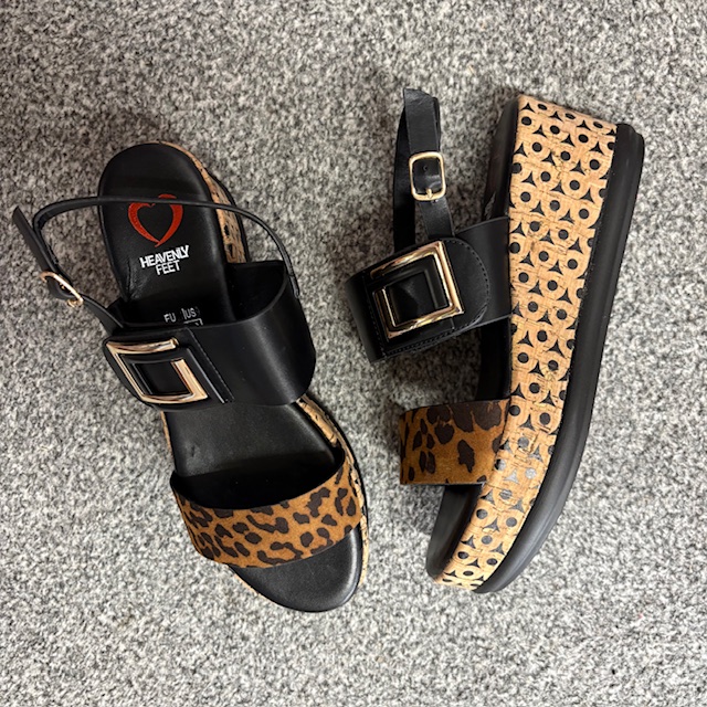 Heavenly Feet “Morven” Black Leopard Wedge Sandal