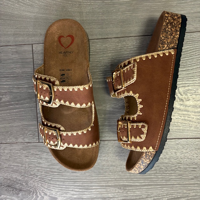 Heavenly Feet “Sandy” Bark Stitched Slider