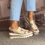 2.3″ white, gold and cream wedge heel with a 1″ front platform.