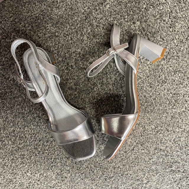 Silver Metallic Sheen Finish with Ankle Strap Closure.