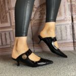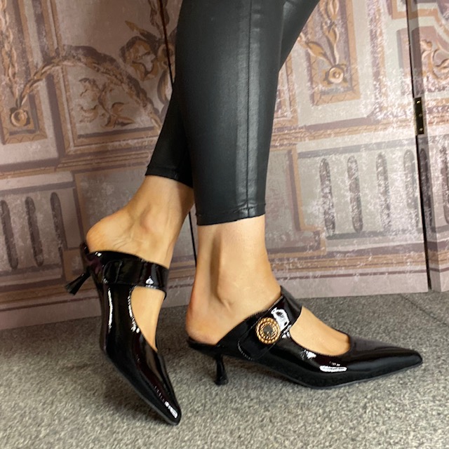 Sorento “Sofitel” Black Shine Heeled Mule