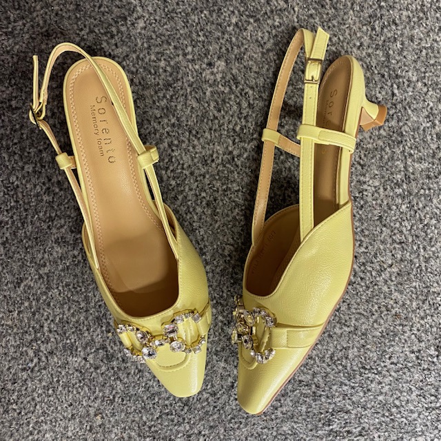 Sorento “Villa Aletta” Lemon Diamond Kitten Heel Slingback