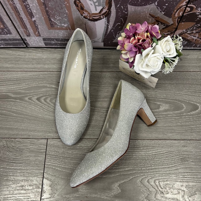 Tamaris “22418-41-9A9” Silver Glam Court Shoe.