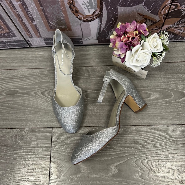 Tamaris “1-24432-41-919” Silver Glam Ankle Strap Shoe