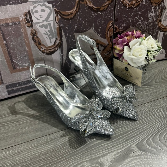Silver diamante finish.