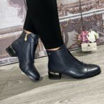 Rounded toe with inner zip and gold “ZC” hardware